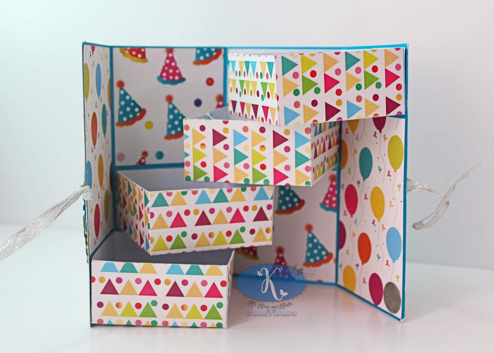 The base is a metallic blue cardstock and I've mixed and matched patterned papers from Papericious 'Happy Birthday' and Nakshathra Designs 'Colorful Birthday' paper packs.